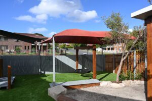 A welcoming covered area perfect for quiet activities, storytelling, and providing shade during sunny days. The perfect spot for parents to relax while keeping a watchful eye on their little ones.